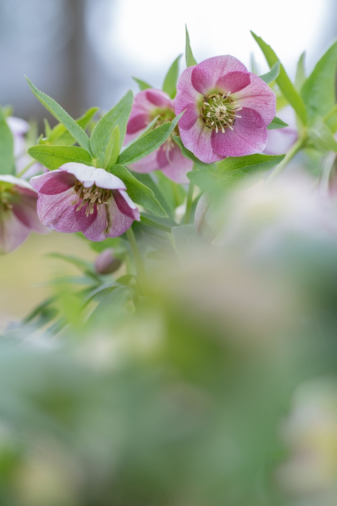 There are so many different colors and shapes of Christmas roses scattered throughout the flower beds that it's hard to imagine how many varieties there are.