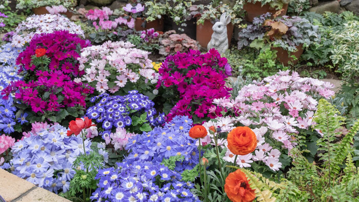 In mid-March, the cyclamens in the glasshouse will be replaced with cineraria, a spring flower.