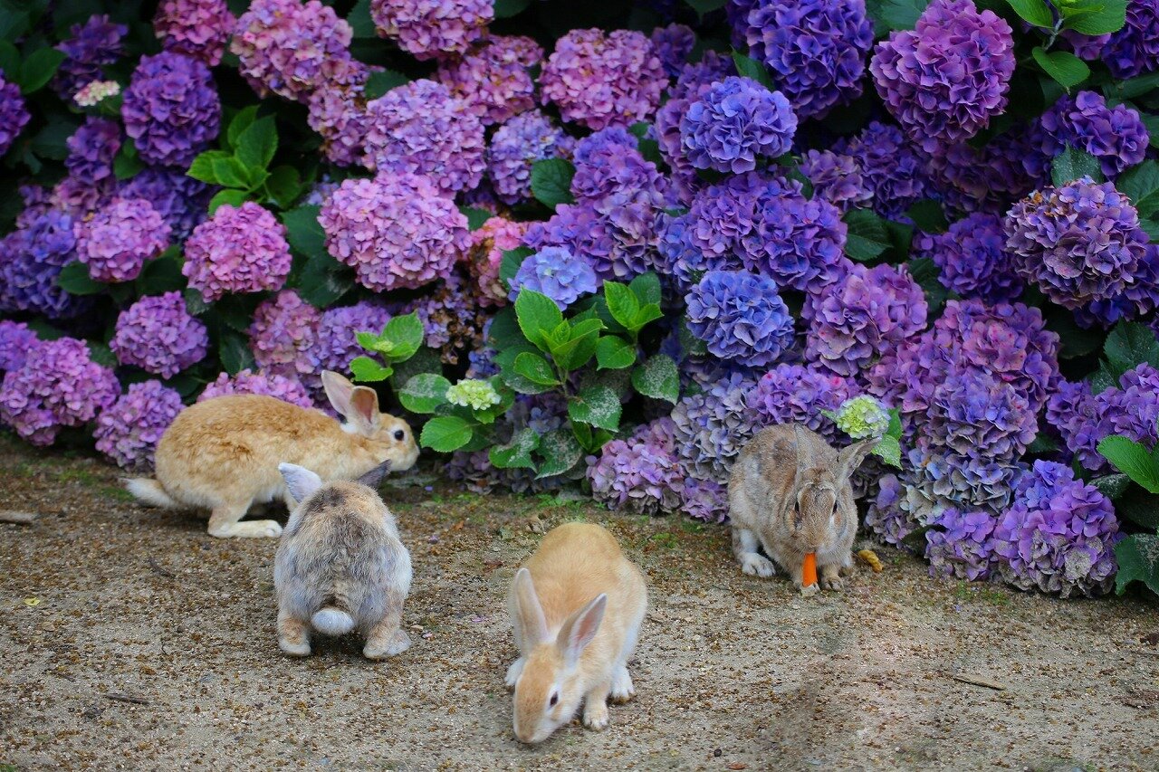 島内では春の桜・初夏のあじさい・秋の紅葉が楽しめ、季節の植物とうさぎのコラボレーションを写真におさめることができます。
