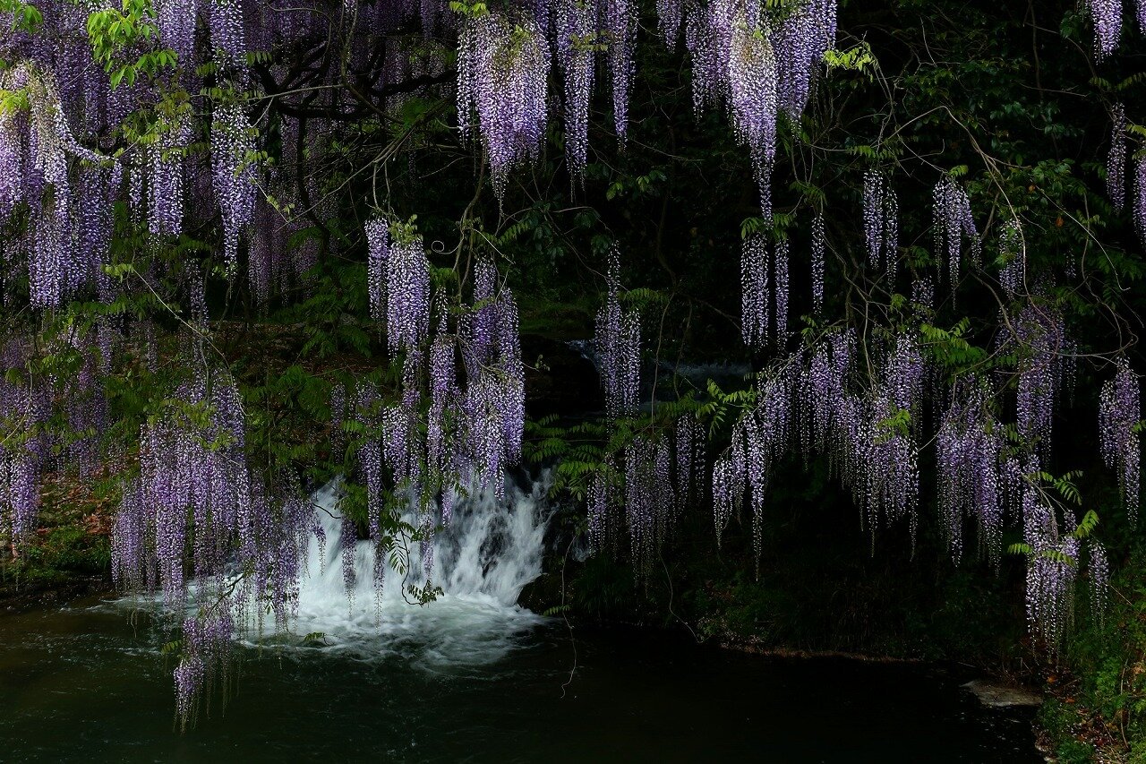 一貫野の藤 いっかんののふじ 山口県 山口市仁保一貫野(にほいっかんの)にある藤の大木です。藤棚ではなく、坂本川の御坊淵(おんぼうぶち)に自生する藤です。小さな滝とその上に垂れ下がるたくさんの藤の花がビュースポットです。 Webサイト http://www.nihoweb.com/ikkannofuji.html タグ検索 一貫野の藤 フジ 山口県 中国 春 月 4月 、 5月 都道府県 山口県