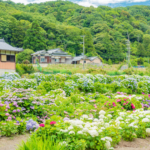 BBQ場、キャンプ場がある施設の一角に、あじさい園があります。60種以上4,500株のあじさいが咲きます。...