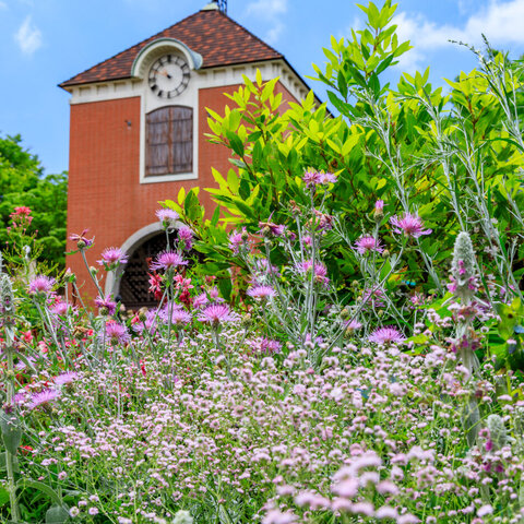 標高400mほどの場所にあるハーブ園。四季折々、約200種75,000株のハーブや花が咲く。
