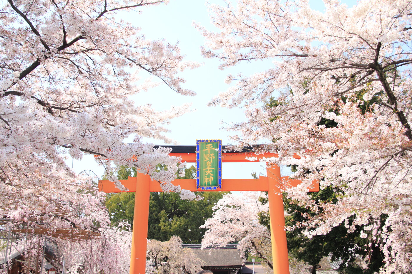 平野神社の桜の歴史は非常に古く、平安時代から桜の名所として知られていました。境内には、早咲きから遅咲きまで約60種、400本以上の桜が植えられており、3月中旬〜4月下旬の間に多様な種類の桜が楽しめます。代表的な桜として、「魁(さきがけ)」や「寝覚(ねざめ)」など、平野神社にしか見られない貴重な桜も含まれています。毎年4月10日には、騎馬武者など総勢約200名による時代行列「桜花祭(おうかさい)」が行われています。