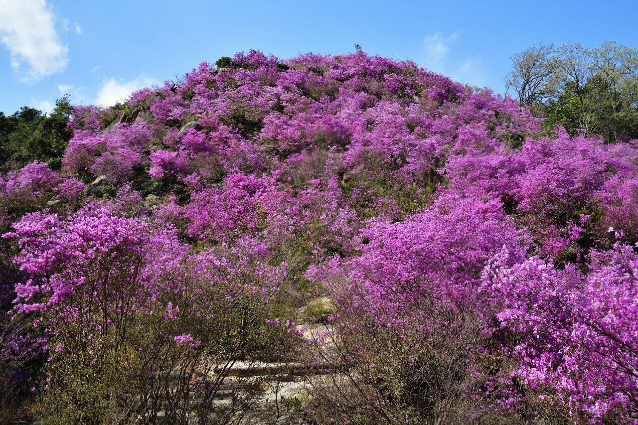 滝上山 たきがみやま 京都府 宮津市、宮津港天橋立を見下ろす標高119mの山です。4月上旬、ミツバツツジで山全体が赤紫色に染まります。山頂から天橋立(あまのはしだて)が少しだけ見えます。 Webサイト https://www.kyoto-kankou.or.jp/event/248 タグ検索 滝上山 ミツバツツジ 京都府 関西 春 月 4月 都道府県 京都府
