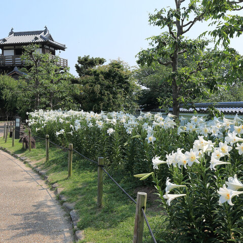 池田城跡公園は、戦国時代に建てられた池田城の跡地に池泉回遊式庭園の公園として整備され、ゆりや花し...