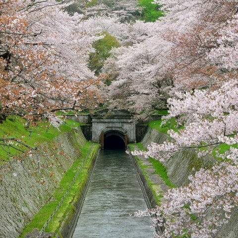琵琶湖の水を京都市に流すために明治時代に作られた水路です。国の史跡に指定されています。両岸にソメ...