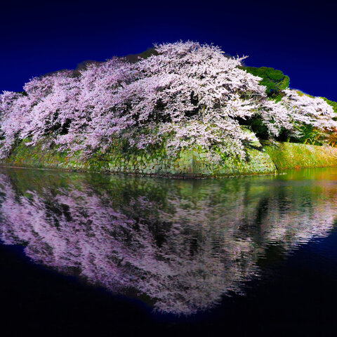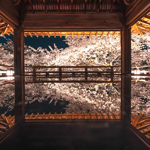境内には1,000本余りの桜が咲き、開花時期に合わせてライトアップが実施されます。