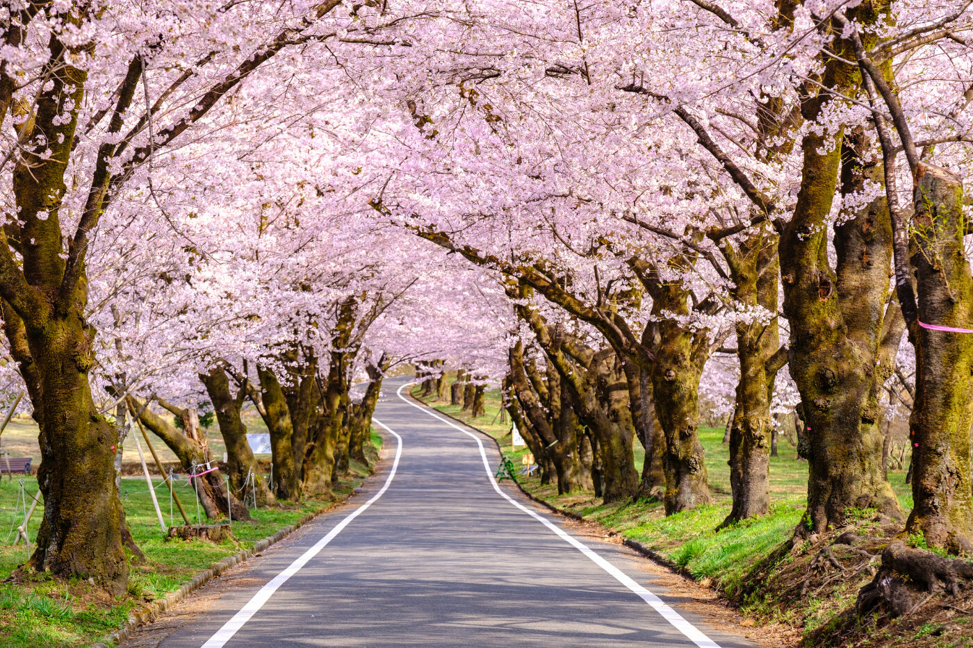 ソメイヨシノが中心で、満開時には桜のトンネルが現れます。