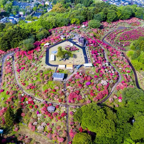 標高143メートル、約7ヘクタールの園内には、霧島・日の出など様々な種類 約8,500株が山一面に植えられ...