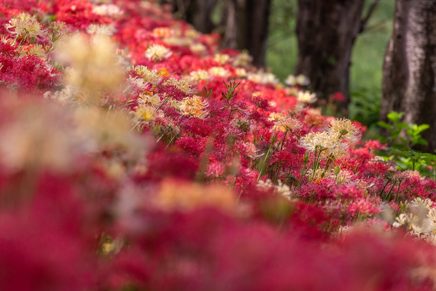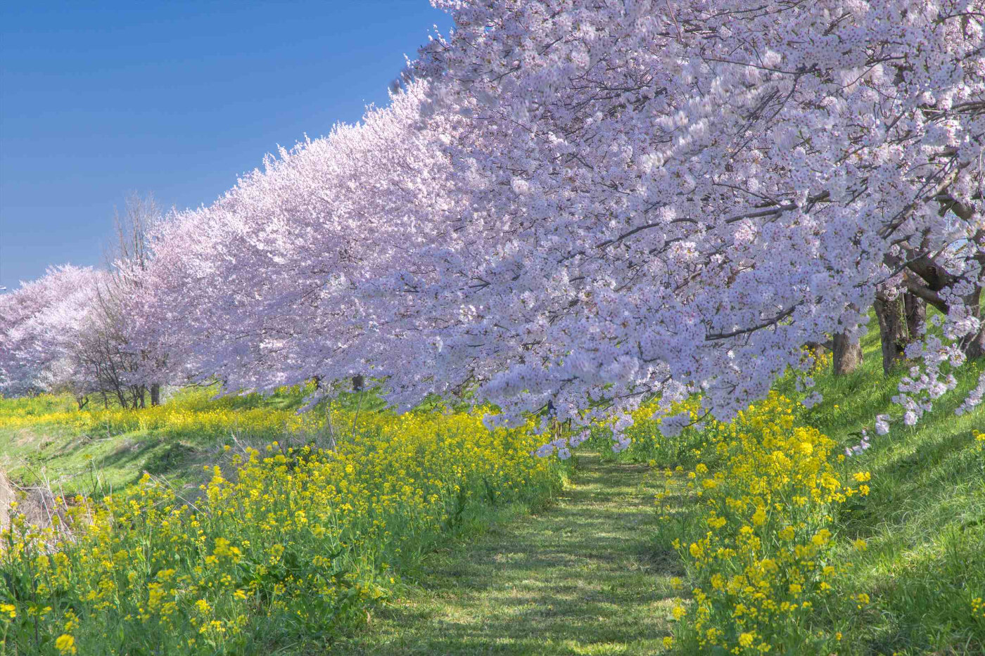 春は桜と菜の花、秋は早咲きの彼岸花が咲きます。