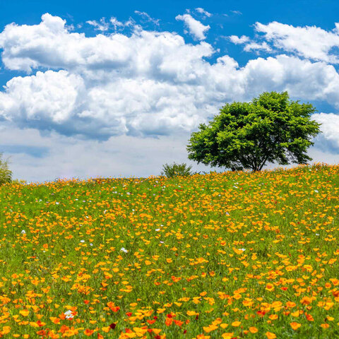 12,000m2の丘がハナビシソウ(カリフォルニアポピー)で埋め尽くされます。