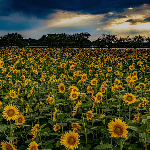 伊佐沼東岸花畑は、夏はひまわり、秋はコスモス畑になります。