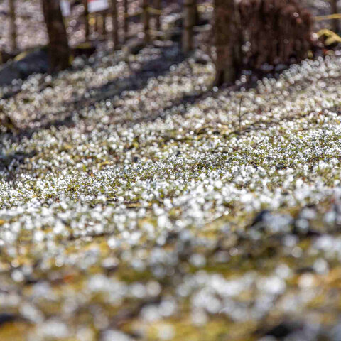約5,000m2の園内が満開時には薄っすらと雪が積もったような景色になります。 駐車場、トイレ有。