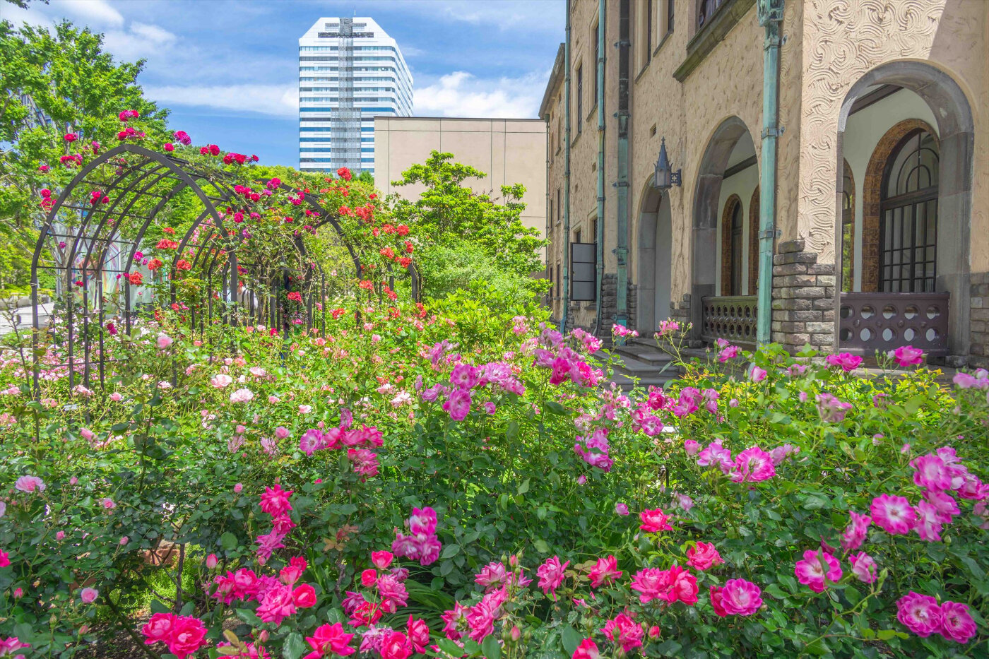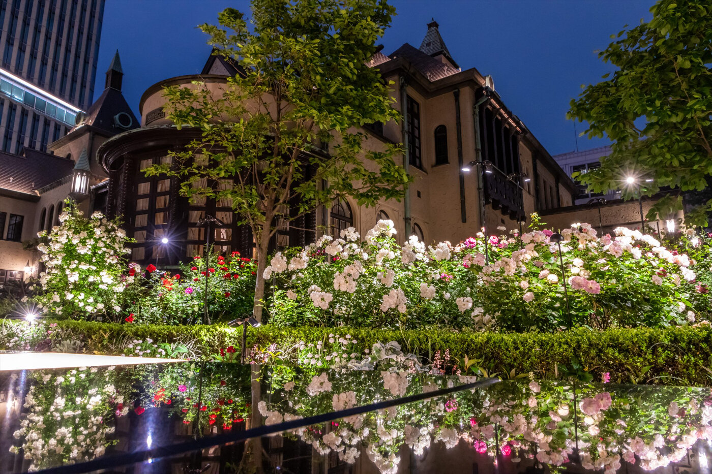 東京ガーデンテラス紀尾井町のバラ園「KIOI ROSE GARDEN」は、赤坂プリンス クラシックハウス(東京都有形文化財)のまわりに約90品種・600株。入場無料。