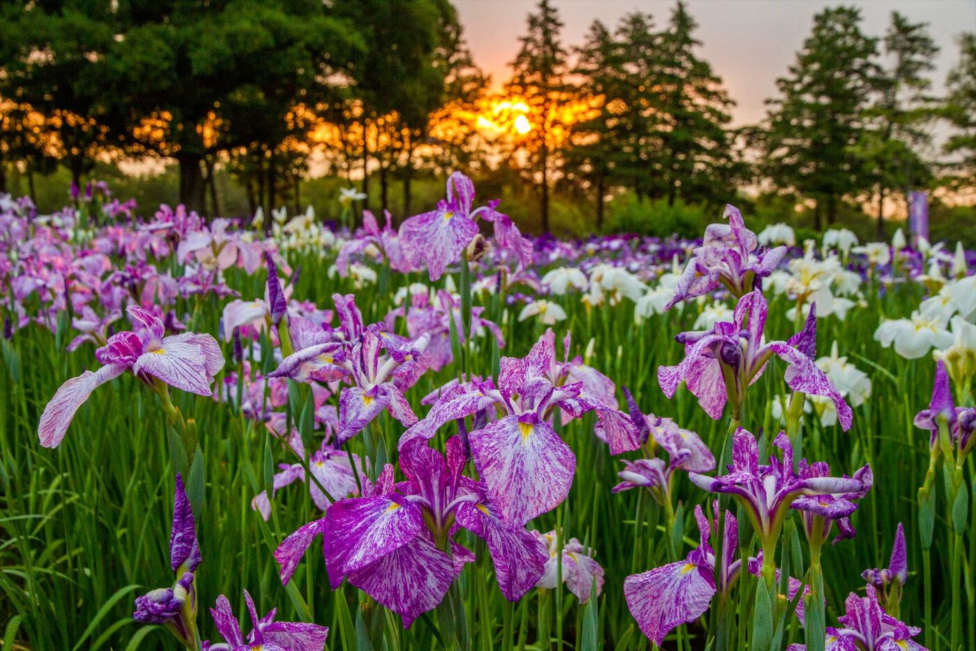 花菖蒲は100種14,000株。同じ葛飾区内の堀切菖蒲園と一緒に葛飾菖蒲まつりが開催されます。
