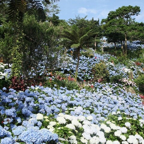 沖縄県北西部、本部半島、八重岳(やえだけ)にあるアジサイ園です。もともとはミカン畑、うっちん畑で...
