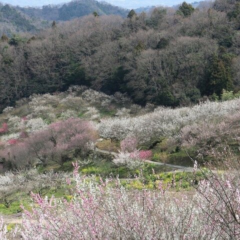小高い里山の山中で、斜面一面に1万6千本を超える梅が咲き誇ります。展望台から梅園を一望でき、見晴...