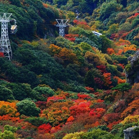 日本三大渓谷美のひとつ(他の二つは、耶馬渓と妙義山)。奇岩と垂直の大岩壁。春の新緑、夏の深緑、秋...