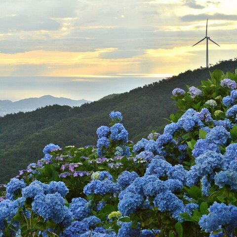四国八十八景に認定された 3 万本のあじさいが咲く標高約 1,000m の大川原高原。見頃を迎える 7 月には...
