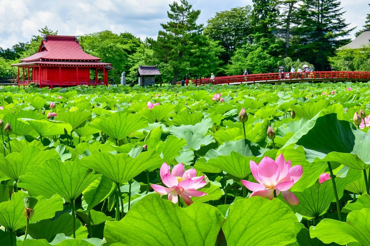 猿賀神社 さるかじんじゃ 青森県 平川市にある神社です。境内に、鏡ヶ池、見晴ヶ池の二つの大池があり、蓮が咲きます。まさに極楽浄土です。春は池畔に桜が咲きます。 Webサイト http://ss701927.stars.ne.jp/ タグ検索 猿賀神社 ハス 青森県 東北 神社仏閣 梅雨 月 7月 都道府県 青森県