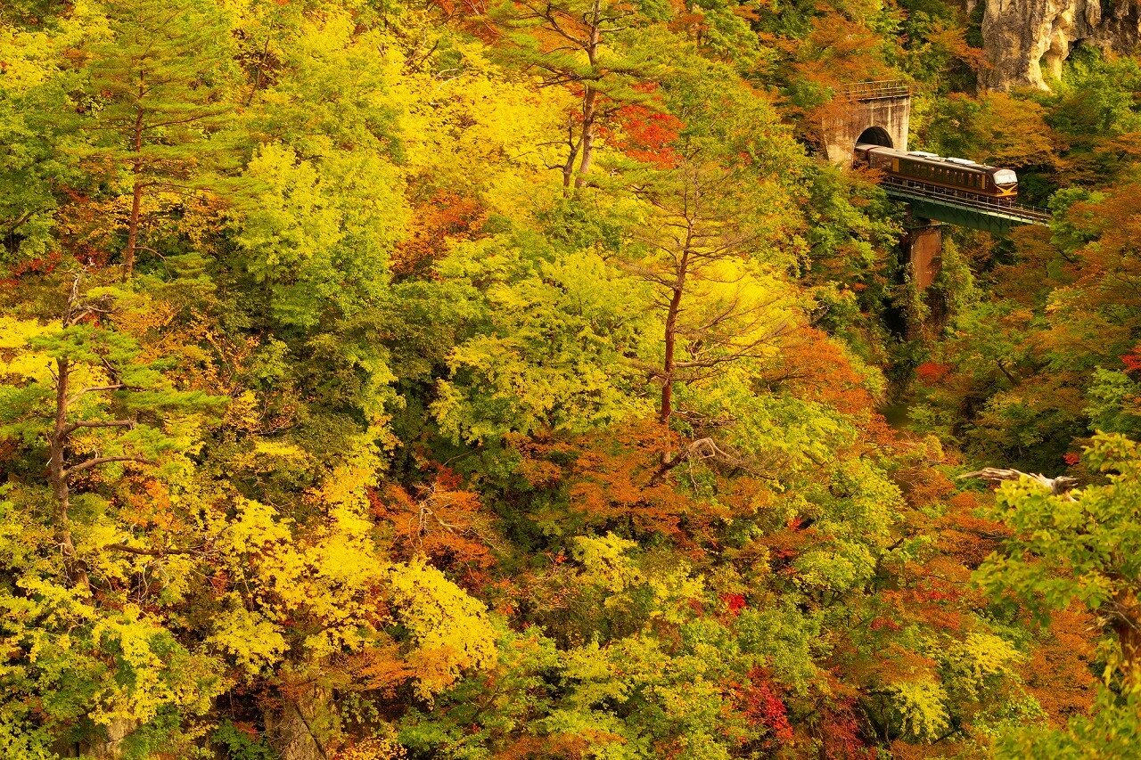 鳴子峡 なるこきょう 宮城県 北上川水系の大谷川のV字谷峡谷。深さ100mの谷が数km続きます。夏は広葉樹林の緑が輝きます。秋は紅葉が綺麗です。 Webサイト https://www.miyagi-kankou.or.jp/theme/detail.php?id=9805 タグ検索 鳴子峡 コウヨウ 紅葉 鉄道 宮城県 東北 月 10月 都道府県 宮城県