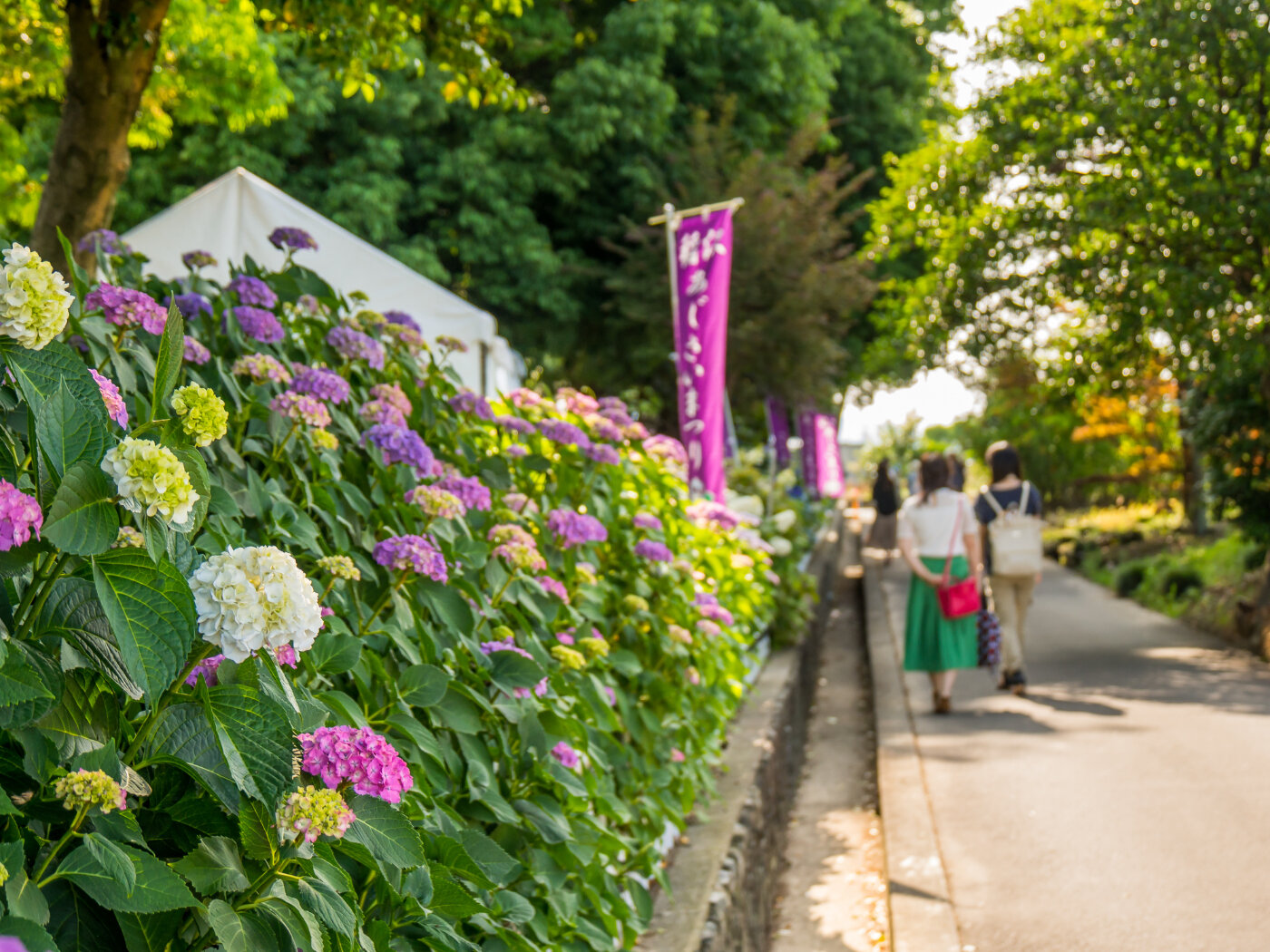 約5700mの敷地に、290種1万株のあじさいの名所。毎年、稲沢あじさいまつりが開催されます。