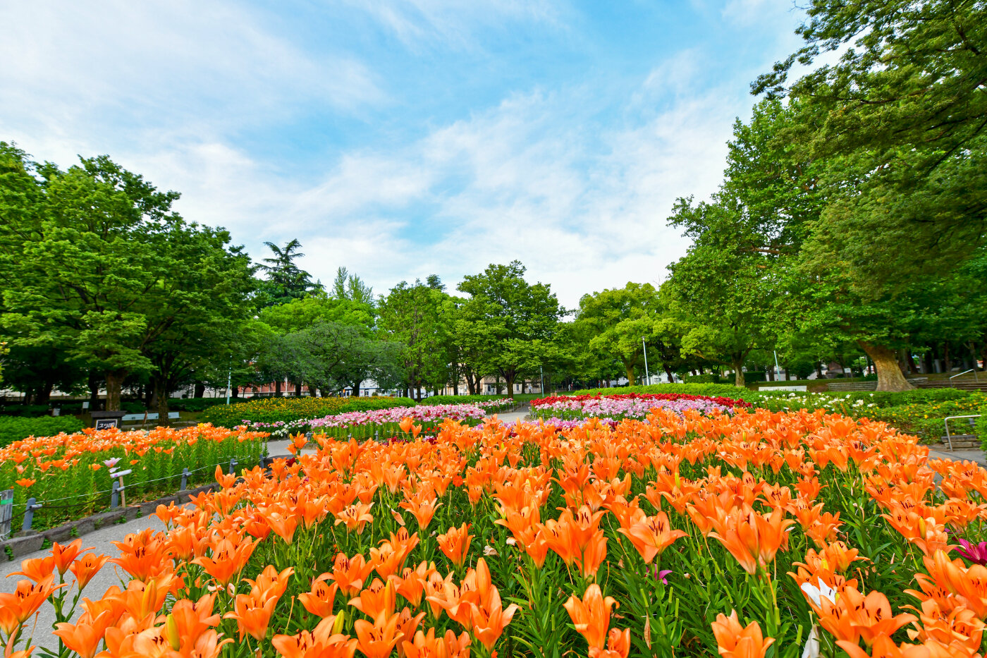 500m2に約10,000球のユリが咲く名所。例年5月下旬~6月上旬が見頃。