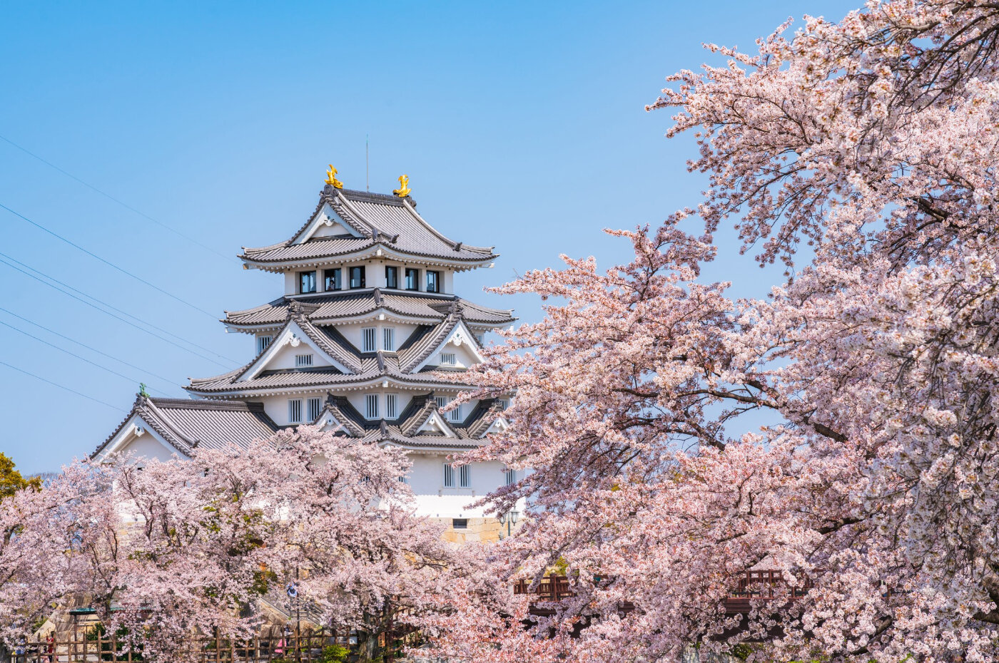 木下藤吉郎(のちの豊臣秀吉)が一夜にして築いたと伝えられています。周囲の桜並木の名所として知られています。周囲を流れる犀川の堤防には約700本のソメイヨシノの桜並木が約3.7km続いています。