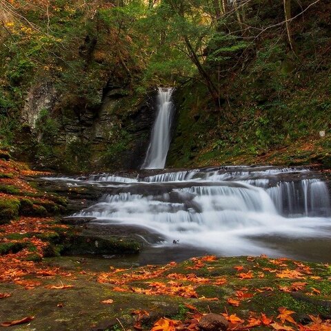名張川の支流、滝川の渓谷に、色々な流れのたくさんの滝があります。渓谷に沿って4kmの遊歩道が整備され...