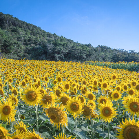 季節により、ネモフィラ、ひまわり、コスモス、コキアを楽しむことができます。