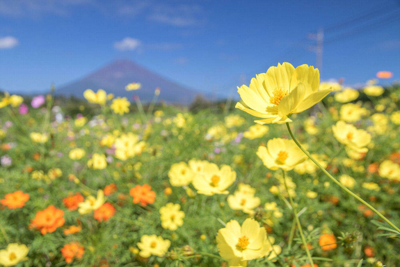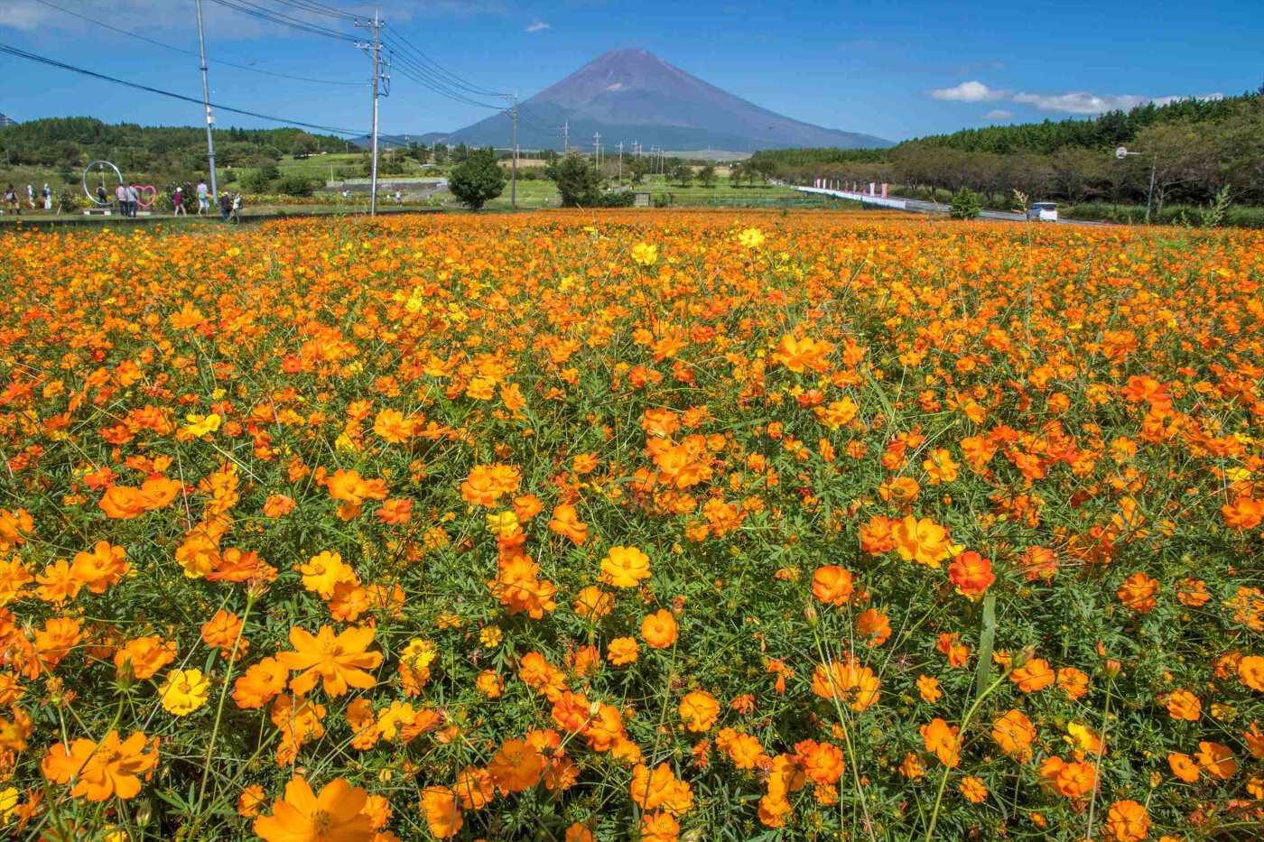 「裾野市パノラマロードを花でいっぱいにする会」と裾野市で、春は菜の花、秋はコスモスを咲かせています。すぐ近くには、裾野市梅の里があり、700本の梅が咲きます。