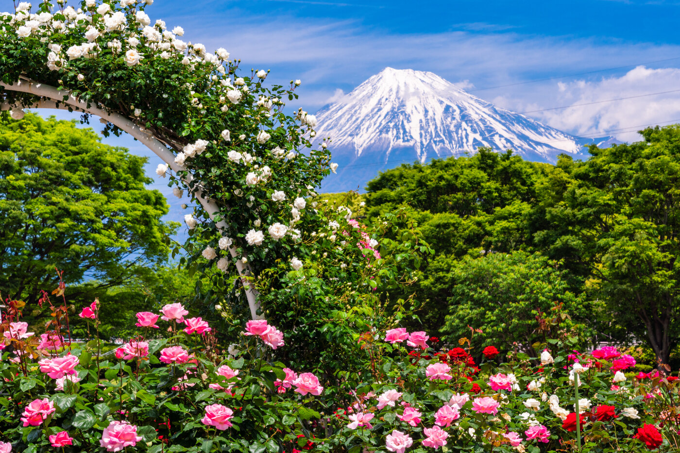 6.3haの敷地の東西にバラ園があり、200種1,800株のバラがあります。富士山とバラのコラボが狙える公園です。桜も90本あります。