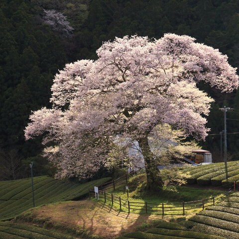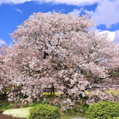 樹齢800年のヤマザクラです。日本最古のヤマザクラといわれ、国の天然記念物です。源頼朝が富士山麓で狩...