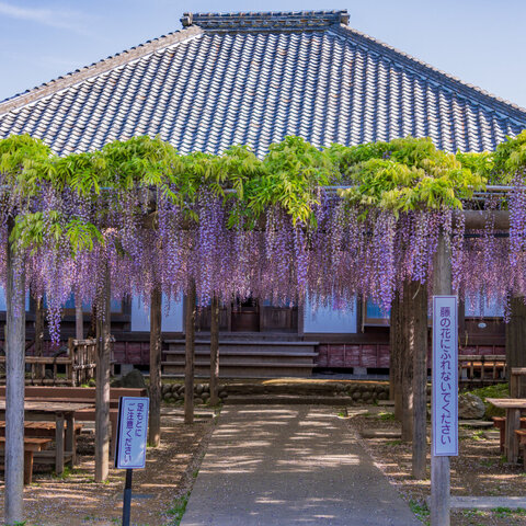 花の房の長さが1m以上にもなる推定樹齢800年の熊野の長藤(国と県の天然記念物)が咲きます。境内には...