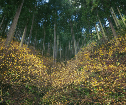 滋賀県内のミツマタ群生地。生育地の間伐により日が入るようになり群落となったと言われています。