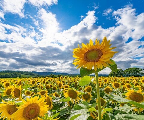東京ドーム5個分200万本のひまわり畑。見渡す限りにひまわりが咲く圧巻の風景が楽しめます。