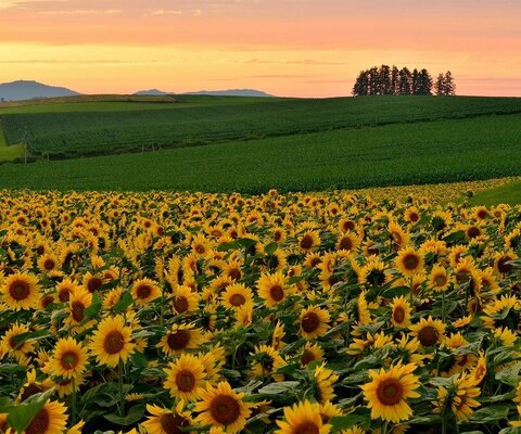 ひまわり畑を丘から眺めることができ、夕焼けとのコラボレーションは美しいです。