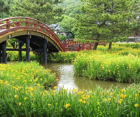 二上山を借景に、4000本以上520種類の色とりどりの牡丹や芍薬が咲き乱れる花のお寺。特に真冬の寒牡丹が...