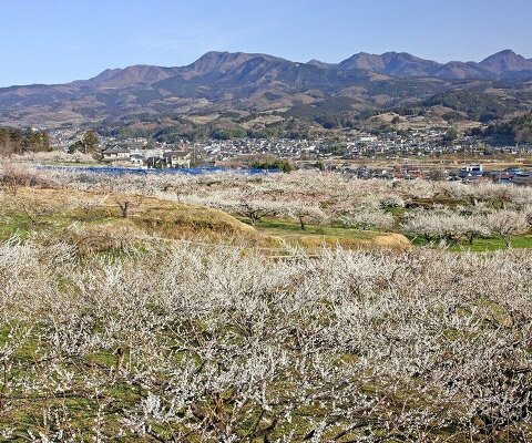群馬三大梅林の一つ。榛名山を背景に広がる400haの広大な敷地に、12万本もの梅が丘陵一帯を白梅の色で埋...
