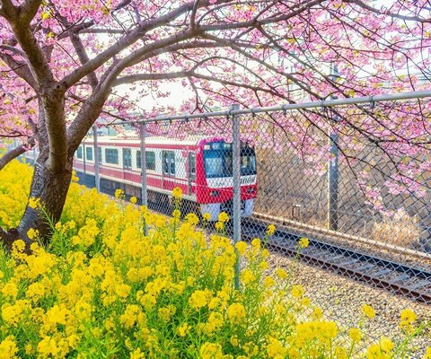 三浦海岸駅から小松ヶ池公園までの京急線沿線沿い1kmに約1000本の河津桜が植栽されています。菜の花との...