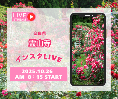 奈良県 霊山寺バラ園からインスタライブを配信いたします。