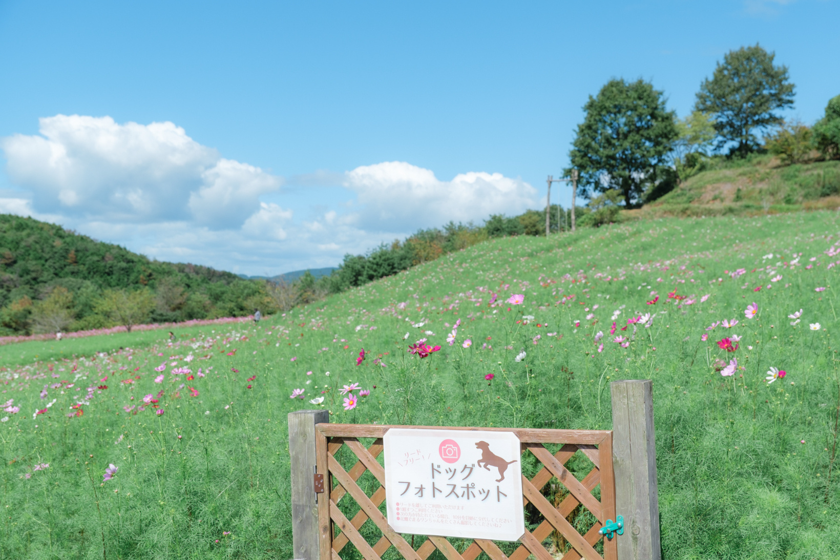 また今年は、コスモスのお花畑の中を駆け抜けるワンちゃんの写真が撮れる新スポットが設営されています(時間制限あり)ワンちゃん連れの方はぜひ訪れてみて下さい。