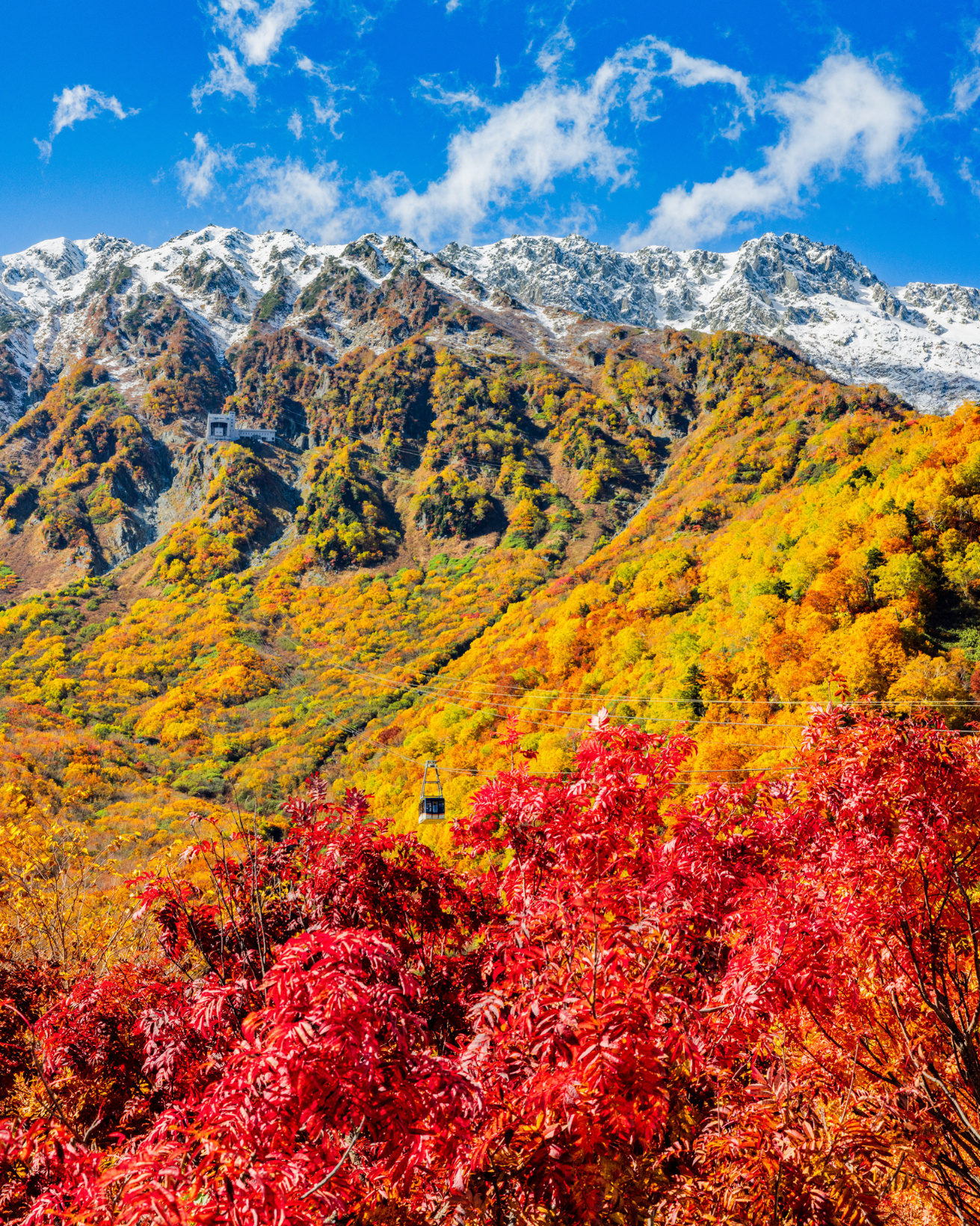 立山黒部アルペンルートの紅葉は、例年9月中旬から色づき始めますが、この写真は10月17日に黒部平で撮影したものです。