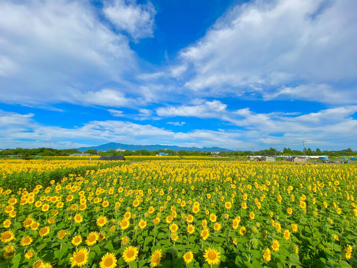 神奈川県座間市に広がる「座間ひまわり畑」は、毎年夏、約55万本ものひまわりが一面に咲き誇る、まさに「関東屈指の絶景スポット」です。例年8月上旬から中旬が見頃。市の花でもあるひまわりが、青空の下で一斉に輝く様は、訪れる人々を圧倒します。