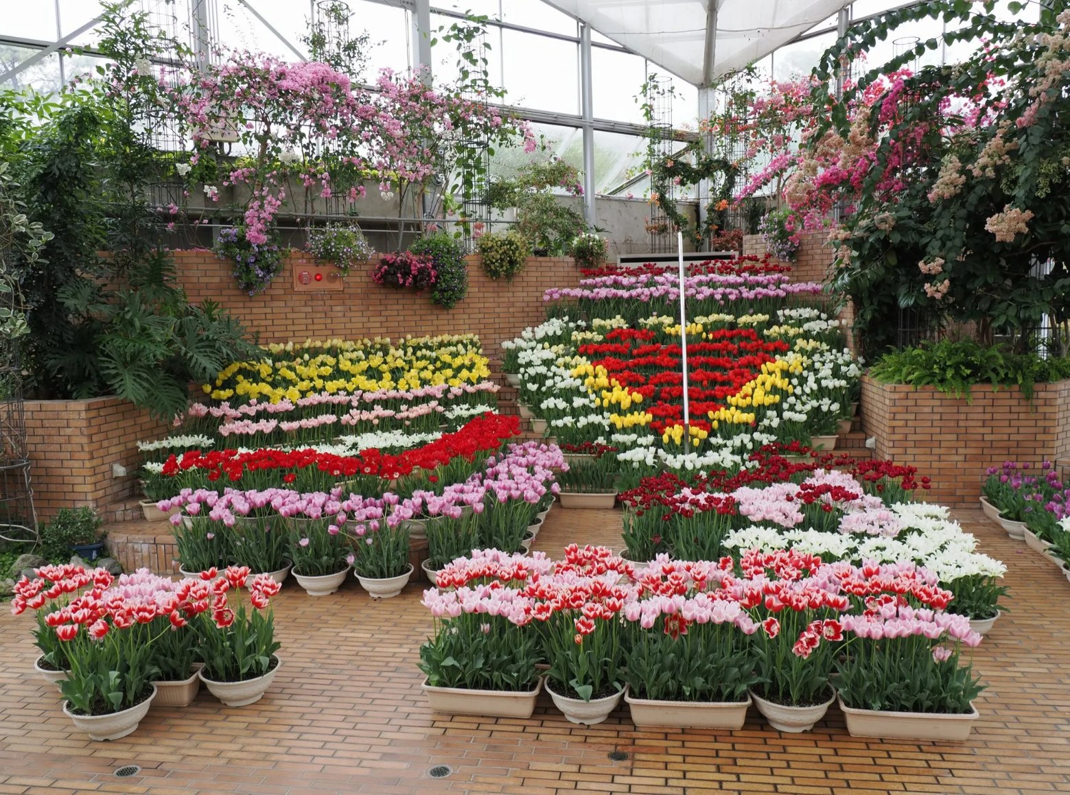 チューリップまつり2026の一番最初のイベント。加温し早く咲かせたチューリップの鉢植えが大温室(フラワーホール)に延べ400鉢並びます。まだ外は少し肌寒いですが、温かい場所でゆっくり観賞ください。